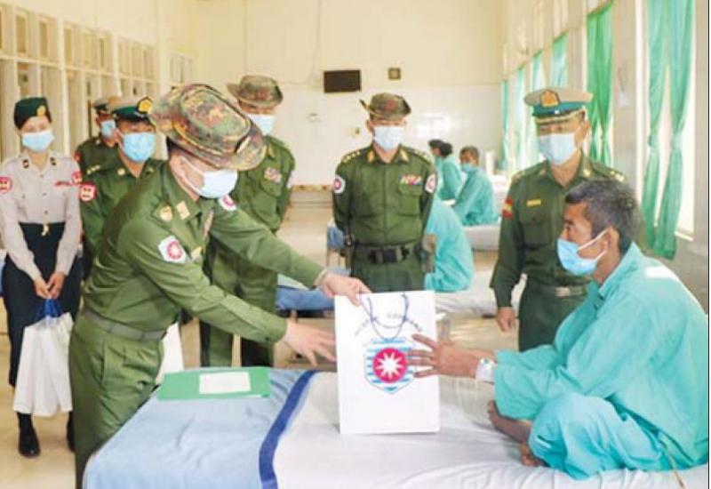 တိုင်းဒေသကြီးနှင့် ပြည်နယ်များရှိ တိုင်းရင်းသား ပြည်သူများအတွက် တပ်မတော်ဆေးရုံများနှင့် ယာယီကုသရေးဆေးရုံများတွင် ကျန်းမာရေးစောင့် ရှောက်မှုများကို ဆောင်ရွက်ပေးလျက်ရှိရာ ဖေဖော် ဝါရီ ၅ ရက်မှ ယနေ့အထိ ပြင်ပလူနာ ၁ဝဝ၈၇ ဦး၊ အတွင်းလူနာ ၄၁၉၁ ဦးကို တပ်မတော်မှ ပါရဂူများ၊ ဆေးမှူးများ၊ သူနာပြုများဖြင့် ကျန်းမာရေးစစ်ဆေး ပေးခြင်း၊ ခွဲစိတ်ရန်လိုအပ်သည့်လူနာများကို ခွဲစိတ် ပေးခြင်း၊ ဆေးရုံတက်ရောက် ကုသရန်လိုအပ်သော လူနာများကို ဆေးရုံတကာ ကျန်းမာရေးစောင့်ရှောက် ပေးခြင်းများ ဆောင်ရွက်ပေးသည့်အပြင် ဆေးရုံ တက်လူနာများနှင့် လူနာစောင့်များ နေထိုင်စားသောက်ရေး အဆင်ပြေစေရန်အတွက် ကိုပါ စီမံဆောင်ရွက်ပေးသည်။