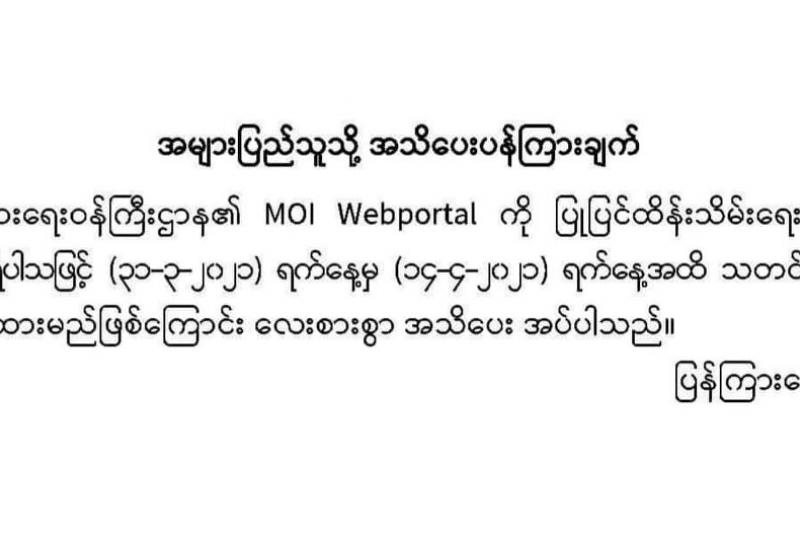 (၂၀၂၁ ခုနှစ်၊ မတ်လ (၂၉)ရက်နေ့ မွန်းလွဲ (၂:၀၀)နာရီအချိန် ထုတ်ပြန်ချက်)