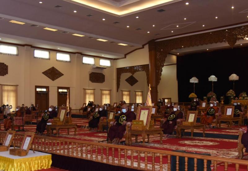 ၂၀၂၁ ခုနှစ် သာသနာတော်ဆိုင်ရာ ဘွဲ့တံဆိပ်တော်များ ရရှိကြသည့် နေပြည်တော်ကောင်စီ နယ်မြေမှ ဆရာတော်ကြီးများ၊ သီလရှင်ဆရာကြီးများနှင့် လူပုဂ္ဂိုလ်တို့အား သာသနာတော် ဆိုင်ရာ ဘွဲ့တံဆိပ်တော်နှင့် အဆောင်အယောင်များ ဆက်ကပ်ပူဇော်ပေးအပ်ပွဲ မဟာမင်္ဂလာ အခမ်းအနားကို ယနေ့မွန်းလွဲပိုင်းတွင် နေပြည်တော် ဥပ္ပါတသန္တိစေတီတော် ပရိဝုဏ်အတွင်းရှိ သာသနာ့မဟာဗိမာန်တော်ကြီး၌ ကျင်းပသည်။