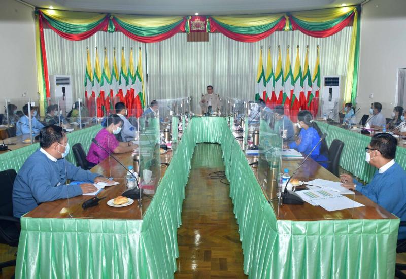 ဧရာဝတီတိုင်းဒေသကြီး စီမံအုပ်ချုပ်ရေးကောင်စီနှင့် တိုင်းဒေသကြီးအဆင့် ဌာနဆိုင်ရာများ တွေ့ဆုံသည့် လုပ်ငန်းညှိနှိုင်း အစည်းအဝေး(၂/၂၀၂၁)ကို မတ် ၁၉ ရက်က ပုသိမ်မြို့ရှိ ဧရာရွှေဝါ ခန်းမ၌ ကျင်းပသည်။