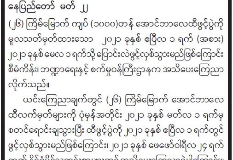 (၂၀၂၁ ခုနှစ်၊ မတ်လ (၂၃)ရက်နေ့၊ နံနက်(၁၀:၃၀)နာရီအချိန် ထုတ်ပြန်ချက်)