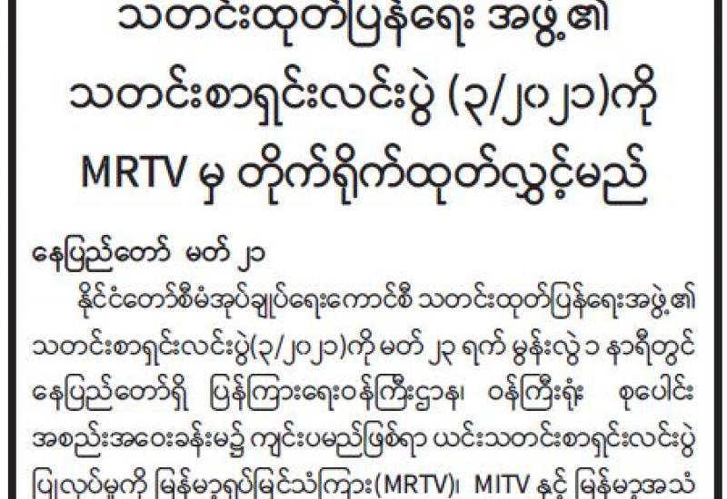 ရန်ကုန်တိုင်းဒေသကြီး စီမံအုပ်ချုပ်ရေးကောင်စီဥက္ကဋ္ဌ ဦးလှစိုး ဦးဆောင်၍ မတ် ၁၈ ရက်က တိုင်းဒေသကြီး စီမံအုပ်ချုပ်ရေးကောင်စီဥက္ကဋ္ဌရုံး အစည်းအဝေးခန်းမ၌ မြန်မာ့ဆက်သွယ်ရေး လုပ်ငန်း ဆက်သွယ်ရေးညွှန်ကြားမှုဦးစီးဌာန မြန်မာ့စာတိုက် လုပ်ငန်းတို့မှ တာဝန်ရှိသူများနှင့် တွေ့ဆုံ၍ ရန်ကုန်တိုင်းဒေသကြီးအတွင်း ဆက်သွယ်ရေးလုပ်ငန်းများ ပိုမိုတိုးတက် ကောင်းမွန်စေရေး လုပ်ငန်းညှိနှိုင်း အစည်းအဝေးပြုလုပ်သည်။
