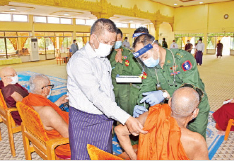 တပ်မတော်အနေဖြင့် တိုင်းစစ်ဌာနချုပ်နယ်မြေ အသီးသီးရှိ ထေရ်ကြီးဝါကြီး ဆရာတော်ကြီးများ အပါအဝင် လူမျိုးမရွေး၊ ဘာသာမရွေး အသက်(၆၅) နှစ်အထက် သက်ကြီးဘိုးဘွားများ၊ ဌာနဆိုင်ရာ ဝန်ထမ်းများနှင့် တိုင်းရင်းသားပြည်သူများကို ကိုဗစ်၁၉ ရောဂါ ကာကွယ်ဆေးထိုးနှံနိုင်ရေးအတွက်ဆေးပစ္စည်းများအား တပ်မတော်လေယာဉ်များဖြင့် သယ်ယူပို့ဆောင်ပေးခြင်းများနှင့် ကာကွယ်ဆေး ထိုးနှံပေးခြင်းများကို ဆောင်ရွက်ပေးလျက် ရှိသည်။