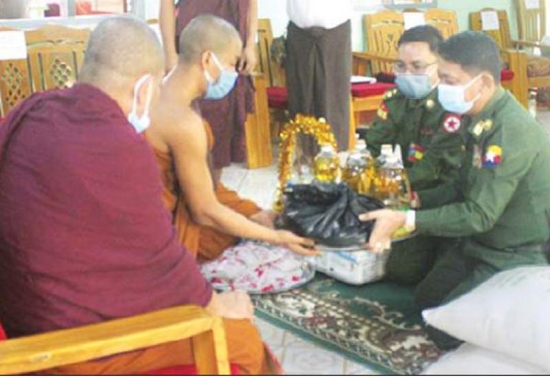 ဘုန်းတော်ကြီး ကျောင်းများ၊ သာသနာ့နွယ်ဝင် သီလရှင် ကျောင်းများနှင့် ဘာသာရေး ကျောင်းများတွင် ဆွမ်းအဆင်ပြေ စေရေးအတွက် တပ်မတော် (ကြည်း၊ ရေ၊ လေ)အရာရှိစစ်သည် အရာထမ်း၊ အမှုထမ်းများက တိုင်းစစ်ဌာနချုပ်များ အလိုက် မြို့နယ်အသီးသီး၌ ဆွမ်းဆန်တော် ဆီ၊ ဆား၊ ပဲအမယ်လေးမျိုး နှင့် လှူဖွယ်ပစ္စည်းများလှူဒါန်းခြင်း၊ နေ့ဆွမ်း၊ အရုဏ်ဆွမ်း ဆက်ကပ် လှူဒါန်းခြင်းနှင့် ကျန်းမာရေး စစ်ဆေးမှုများကို ဆောင်ရွက်လျက်ရှိသည်။