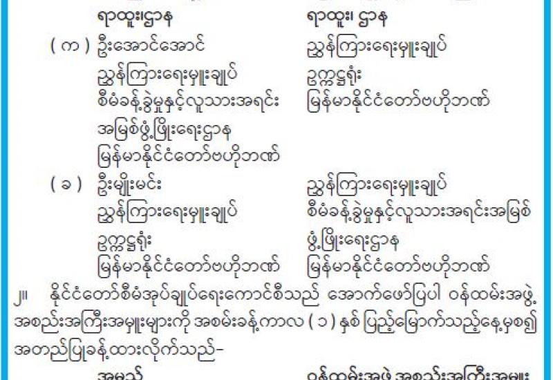 နေပြည်တော်စည်ပင်သာယာရေးကော်မတီသုခတော်ဝင်အိမ်ရာတွင် ဒုတိယအဆင့် ဆောက်လုပ်ပြီးစီးသည့် တိုက်များမှငွေပေးသွင်းပြီးသော မြေညီထပ် အခန်း (၃၀)၊ ပထမထပ် (၂၂)ခန်းနှင့် ဒုတိယထပ် (၁၄)ခန်း၊ စုစုပေါင်း (၆၆) ခန်းတို့အား မဲနှိုက်နေရာချထားခြင်း အခမ်းအနားကို ယနေ့နံနက် ၉ နာရီက နေပြည်တော်စည်ပင်သာယာရေးကော်မတီ မင်္ဂလာခန်းမ၌ ကျင်းပသည်။