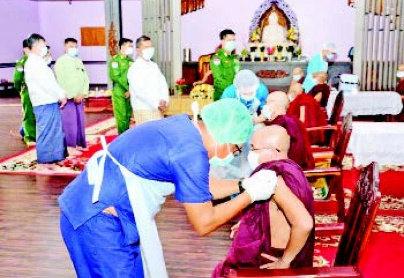 (တပ်မတော်အနေဖြင့် တိုင်းစစ်ဌာနချုပ်နယ်မြေအသီးသီးရှိ ထေရ်ကြီးဝါကြီး ဆရာတော် ကြီးများ အပါအဝင်လူမျိုးမရွေး၊ ဘာသာမရွေး အသက် ၆၅ နှစ်အထက်သက်ကြီးဘိုးဘွားများ၊ ဌာနဆိုင်ရာ ဝန်ထမ်းများနှင့် တိုင်းရင်းသားပြည်သူ များအားကိုဗစ်-၁၉ ရောဂါကာကွယ်ဆေး ထိုးနှံနိုင်ရေးအတွက်ဆေးပစ္စည်းများအား တပ်မတော်လေယာဉ်များဖြင့် သယ်ယူ ပို့ဆောင် ပေးခြင်းများနှင့် ကာကွယ်ဆေး ထိုးနှံပေးခြင်းများကို ဆောင်ရွက်ပေး လျက်ရှိသည်။