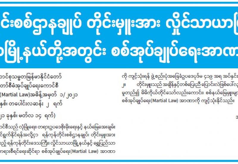 (၂၀၂၁ ခုနှစ်၊ မတ်လ (၁၄)ရက်နေ့ ည(၇:၀၀)နာရီအချိန် ထုတ်ပြန်ချက်)
