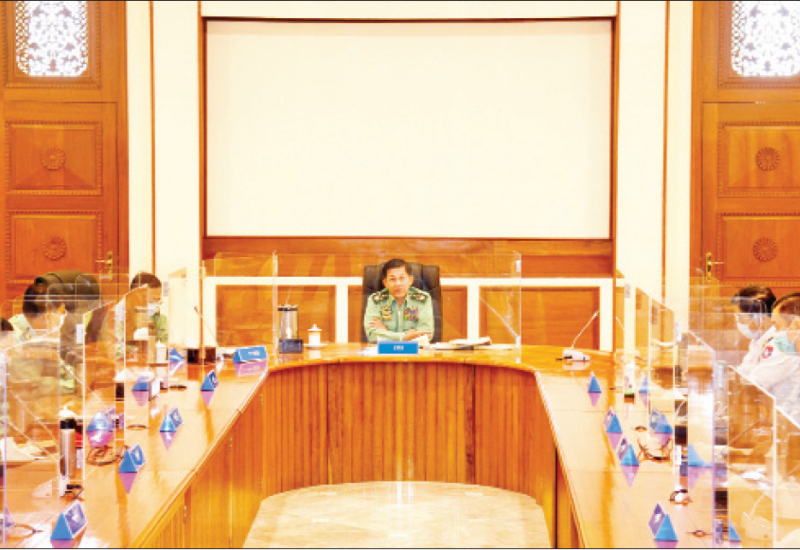 နိုင်ငံတော်စီမံအုပ်ချုပ်ရေးကောင်စီ အစည်းအဝေး(၅/၂၀၂၁)ကို ယနေ့ မွန်းလွဲပိုင်းတွင် နေပြည်တော်ရှိ နိုင်ငံတော်စီမံအုပ်ချုပ်ရေးကောင်စီ ဥက္ကဋ္ဌရုံး အစည်းအဝေး ခန်းမ၌ ကျင်းပရာ နိုင်ငံတော်စီမံအုပ်ချုပ်ရေးကောင်စီဥက္ကဋ္ဌ၊ တပ်မတော်ကာကွယ်ရေးဦးစီးချုပ် ဗိုလ်ချုပ်မှူးကြီး မင်းအောင်လှိုင် တက်ရောက်အမှာစကားပြောကြားသည်။