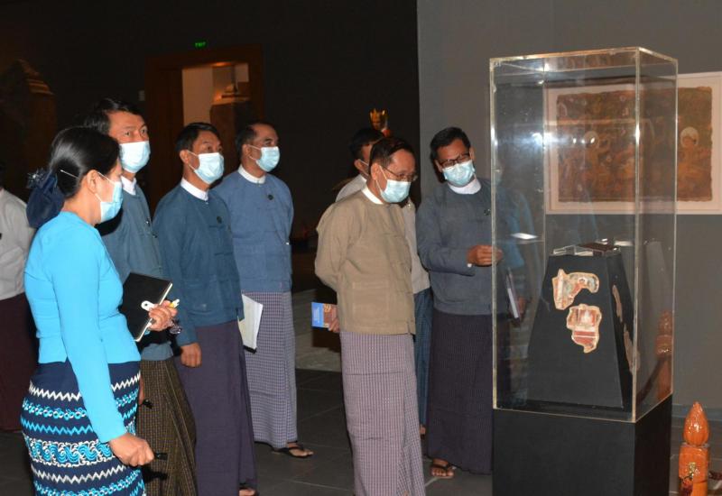 သာသနာရေးနှင့်ယဉ်ကျေးမှုဝန်ကြီးဌာန ပြည်ထောင်စုဝန်ကြီး ဦးကိုကိုသည် ယနေ့ နံနက် ၁၀ နာရီတွင် အမျိုးသားပြတိုက်(နေပြည်တော်) အတွင်း ခင်းကျင်းပြသထားမှု များကို ကြည့်ရှု စစ်ဆေးသည်။