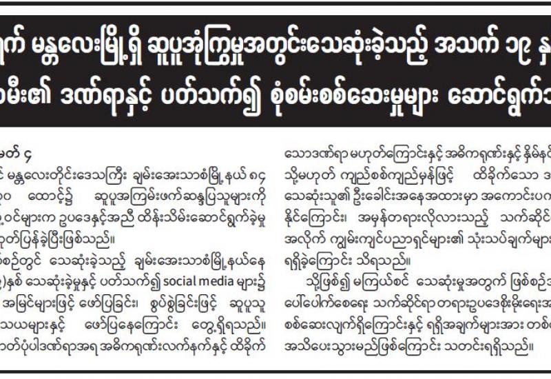 (၂၀၂၁ ခုနှစ်၊ မတ်လ (၅)ရက်နေ့၊ နံနက်(၁၀:၃၀)နာရီအချိန် ထုတ်ပြန်ချက်)