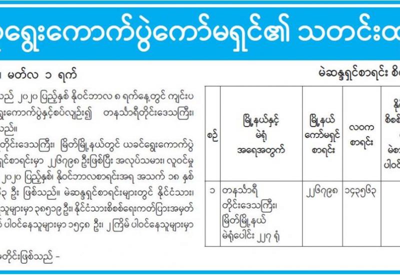 (၂၀၂၁ ခုနှစ်၊ မတ်လ (၁)ရက်နေ့ ညနေ(၄:၀၀)နာရီအချိန် ထုတ်ပြန်ချက်)
