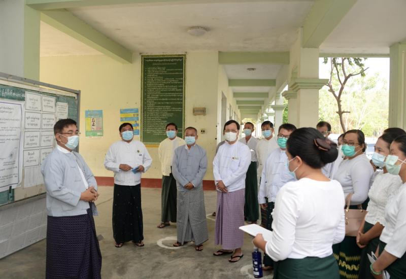 ပညာရေးဝန်ကြီးဌာန ပြည်ထောင်စုဝန်ကြီး ဒေါက်တာညွှန့်ဖေသည် ဒုတိယ ဝန်ကြီးများ ဖြစ်ကြသော ဒေါက်တာ ဇော်မြင့်၊ ဦးဇော်ဝင်းနှင့် တာဝန်ရှိသူများနှင့်အတူ ယနေ့နံနက်ပိုင်းတွင် နေပြည်တော် ဉတ္တရသီရိမြို့နယ် အမှတ် (၁၂) အခြေခံပညာ အထက်တန်းကျောင်း၊ ပုဗ္ဗသီရိမြို့နယ် အမှတ်(၁၃) အခြေခံပညာအထက်တန်းကျောင်း နှင့် ပုဗ္ဗသီရိမြို့နယ် ရေပြာအခြေခံပညာအထက်တန်းကျောင်း(ခွဲ)သို့ သွားရောက်၍ အခြေခံပညာ ကျောင်းများ ပြန်လည် ဖွင့်လှစ်နိုင်ရေး ပြင်ဆင်ထားရှိမှုအခြေအနေများကို လှည့်လည်ကြည့်ရှုသည်။