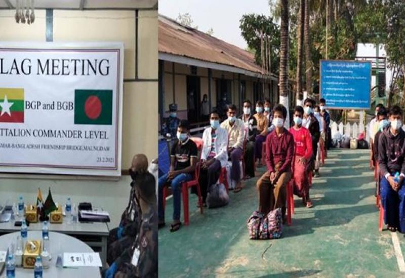 မြန်မာ-ဘင်္ဂလားဒေ့ရှ် နှစ်နိုင်ငံ နယ်ခြားစောင့်တပ်ဖွဲ့များအကြား တပ်ရင်းမှူးအဆင့် အလံတင် အစည်းအဝေးကို ယနေ့နံနက် ၁၀ နာရီတွင် မြန်မာနိုင်ငံ၊ မောင်တောမြို့၊ အမှတ် (၁) လူဝင်/ ထွက်စစ်ဆေးရေးစခန်း (POE) ၌ ကျင်းပသည်။