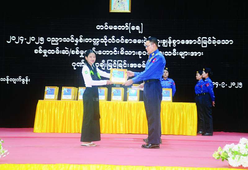 ၂၀၂၄ - ၂၀၂၅ ပညာသင်နှစ် တက္ကသိုလ်ဝင်စာမေးပွဲ၌ ထူးချွန်စွာ အောင်မြင်ခဲ့ကြသည့် တပ်မတော် (ရေ) မှ စစ်မှုထမ်းဆဲနှင့် စစ်မှုထမ်းဟောင်းမိသားစုဝင် သားသမီးများအား ဂုဏ်ပြုဆုချီးမြှင့်ခြင်းကို ယနေ့နံနက်ပိုင်းတွင် ဧရာဝတီရေတပ်စခန်းဌာနချုပ်၌ ကျင်းပပြုလုပ်ရာ ကာကွယ်ရေးဦးစီးချုပ် (ရေ) ဗိုလ်ချုပ်ကြီး ထိန်ဝင်းနှင့် အရာရှိ၊ စစ်သည်၊ မိသားစုများ၊ စစ်မှုထမ်းဟောင်းမိသားစုဝင်များ၊ တက္ကသိုလ်ဝင်စာမေးပွဲ၌ အောင်မြင်ခဲ့ကြသည့် ကျောင်းသား ကျောင်းသူများ၊ ကျောင်းသားမိဘများနှင့် ဖိတ်ကြားထားသူများ တက်ရောက်ကြသည်။