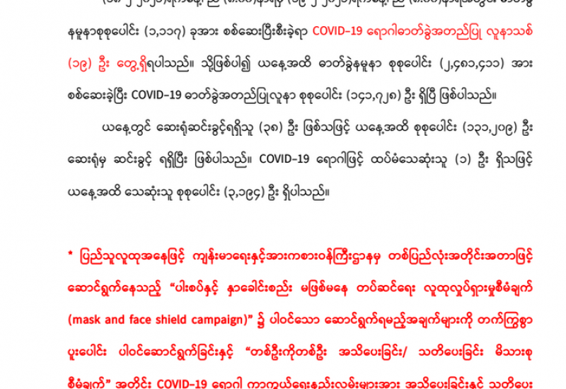 (၂၀၂၁ ခုနှစ်၊ ဖေဖော်ဝါရီလ (၂၀)ရက်နေ့ မွန်းလွဲ (၂:၀၀)နာရီအချိန် ထုတ်ပြန်ချက်)