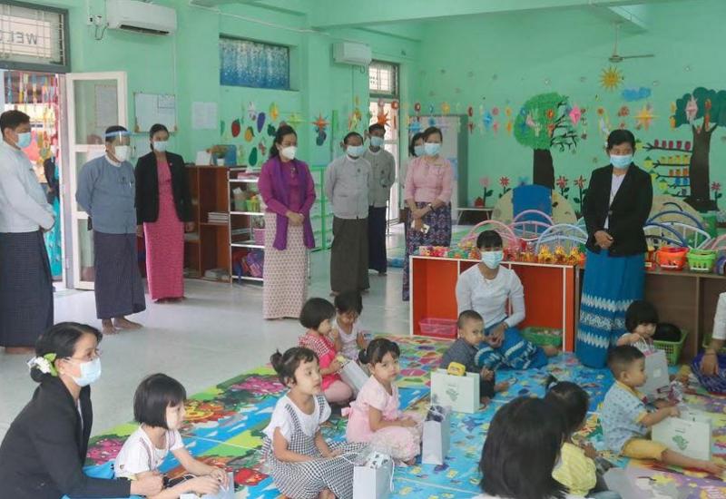 လူမှုဝန်ထမ်း၊ ကယ်ဆယ်ရေးနှင့် ပြန်လည်နေရာ ချထားရေး ဝန်ကြီးဌာန၊ ပြည်ထောင် စုဝန် ကြီး၊ ဒေါက်တာသက်သက်ခိုင်သည် အမြဲတမ်းအတွင်းဝန်၊ လူမှုဝန်ထမ်းဦးစီးဌာန၊ ညွှန်ကြားရေး မှူးချုပ်နှင့် ဒုတိယညွှန်ကြားရေးမှူးချုပ်များနှင့်အတူ ယနေ့ နံနက် ၁၀ နာရီတွင် လူမှုဝန်ထမ်း၊ ကယ်ဆယ်ရေးနှင့် ပြန်လည်နေရာချထားရေးဝန်ကြီးဌာန၊ လူမှုဝန်ထမ်းဦးစီးဌာန ဝန်ထမ်း များ၏ အသက်(၃)နှစ်အောက် ကလေးများအတွက်ဖွင့်လှစ်ထားရှိသည့် မေမေ့ရင်ခွင် နေ့ ကလေးထိန်း ဌာနသို့ သွားရောက်၍ ကလေး ငယ်များကို ပြုစုစောင့်ရှောက်မှုအခြေအနေများကို ကြည့်ရှုကာ လိုအပ်သည်များကို မှာကြား၍ နေ့ကလေးထိန်းဌာနတွင် သား/သမီး ရင်သွေး ငယ်လေးများအား မုန့်၊ ပဲနို့နှင့် အရုပ် လက်ဆောင် ပစ္စည်းများပေးအပ်သည်။