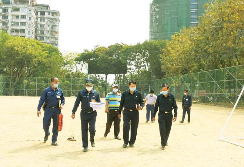 ရန်ကုန် ဖေဖော်ဝါရီ ၁၈ ရန်ကုန်မြို့တော် စည်ပင်သာယာရေး ကော်မတီ ဥက္ကဋ္ဌ (မြို့တော်ဝန်) ဦးဗိုလ်ဌေး၊ ဒုတိယမြို့တော်ဝန်ဦးညီညီ နှင့်အတွင်းရေးမှူး ဦးညွန့်ဖေတို့သည် ယနေ့နံနက် ၁၁ နာရီက ဗဟန်း မြို့နယ် ပုလဲလမ်းရှိ ပုလဲအားကစား ကွင်း အဆင့်မြှင့်တင်နေမှုများကို ကြည့်ရှုစစ်ဆေးသည်။