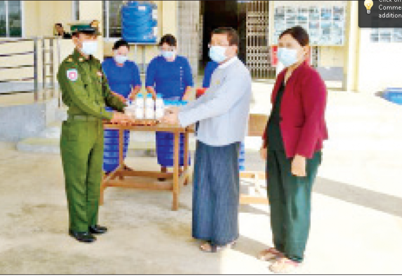 ကိုဗစ်-၁၉ ရောဂါ ကာကွယ်၊ ထိန်းချုပ်၊ ကုသမှုလုပ်ငန်းများဆောင်ရွက်နေစဉ်ကာလအတွင်း သွားလာမှု ကန့်သတ်ချက် များကြောင့် ဒေသခံပြည်သူများ စားရေးအဆင်ပြေစေရန် အတွက် နယ်မြေခံ တပ်မတော် သားများက ဆန်၊ ဆီနှင့် စားသောက်ဖွယ်ရာများကို အိမ်အရောက် လိုက်လံပေးဝေ လှူဒါန်းလျက်ရှိသည်။