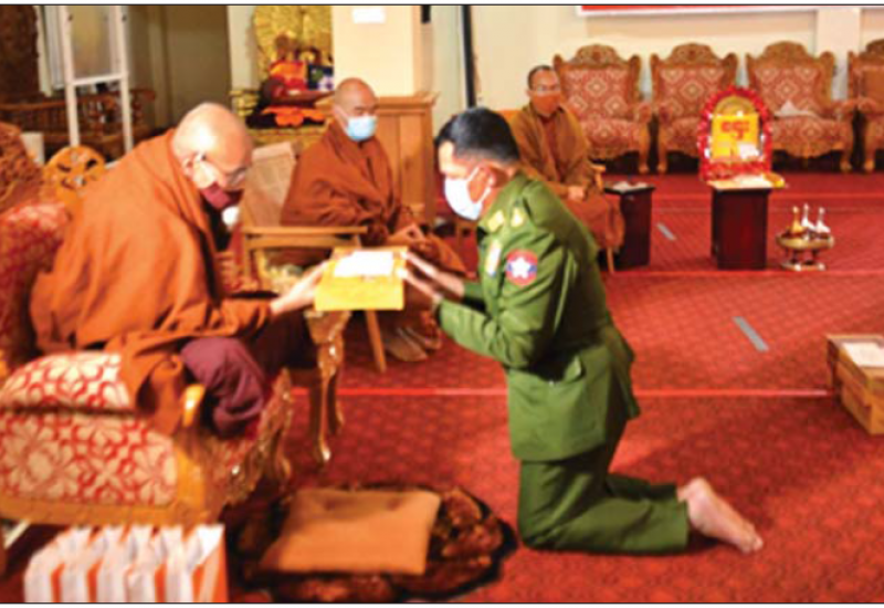 ရှမ်းပြည်နယ် (တောင်ပိုင်း)၊ တောင်ကြီးမြို့၊ ဘုရားဖြူ ရပ်ကွက်၊ ရှမ်းပြည်နယ်ဗုဒ္ဓတက္ကသိုလ် ပါမောက္ခချုပ်ဆရာတော် ဒေါက်တာ ဓမ္မသာမိ (အောက်စဖို့ဒ်ဆရာတော်) အမှူးပြုသော ဆရာတော်ကြီး များနှင့် သံဃာတော်များအား ဖေဖော်ဝါရီ ၁၁ ရက် မွန်းလွဲပိုင်းက ကာကွယ်ရေးဦးစီးချုပ်ရုံး (ကြည်း) မှ ဒုတိယဗိုလ်ချုပ်ကြီး အောင်ဇော်အေး၊ အရှေ့ပိုင်းတိုင်း စစ်ဌာနချုပ် တိုင်းမှူး ဗိုလ်မှူးချုပ် နီလင်းအောင်နှင့် အဖွဲ့ဝင်များက သွားရောက်ဖူးမြော်ကြည် ညို ကြသည်။