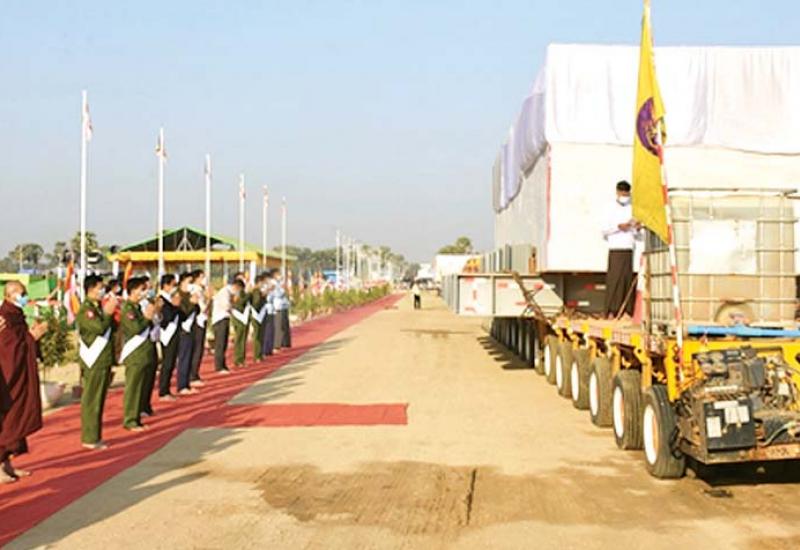 နေပြည်တော်တွင် တည်ထားကိုးကွယ်မည့် ဘူမိဖဿမုဒြာ ထိုင်တော်မူကျောက်ဆစ် ဗုဒ္ဓရုပ်ပွားတော်မြတ်ကြီး၏ ဆင်းတုတော်နှင့် ပလ္လင်တော် အစိတ်အပိုင်းများကို Modular Trailer ဖြင့် ဆီမီးခုံဆိပ်ကမ်းမှ တည်ထား ကိုးကွယ်မည့် နေပြည်တော်ကောင်စီနယ်မြေသို့ ဒုတိယ အကြိမ် ပင့်ဆောင်ပူဇော်ခြင်း မဟာမင်္ဂလာ အခမ်းအနားကို ယနေ့မွန်းလွဲပိုင်းတွင် မန္တလေးတိုင်းဒေသကြီး ငါန်းဇွန် မြို့နယ် ဆီမီးခုံကျေးရွာ အနီး၌ ကျင်းပသည်။