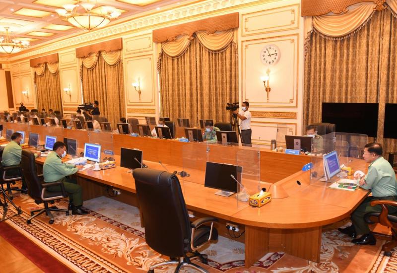 နိုင်ငံတော်စီမံအုပ်ချုပ်ရေး ကောင်စီဥက္ကဋ္ဌ၊ တပ်မတော်ကာကွယ်ရေးဦးစီးချုပ် ဗိုလ်ချုပ်မှူးကြီး မင်းအောင်လှိုင်သည် ယနေ့နံနက် ပိုင်းတွင် နေပြည်တော်ရှိ နိုင်ငံတော် စီမံအုပ်ချုပ်ရေးကောင်စီ ဥက္ကဋ္ဌရုံး အစည်းအဝေးခန်းမ၌ နိုင်ငံတော်စီမံအုပ်ချုပ်ရေး ကောင်စီ အဖွဲ့ဝင်များအားတွေ့ဆုံပြီး နိုင်ငံရေး၊ စီးပွားရေး၊လူမူရေး၊ အုပ်ချုပ်ရေး၊ ငြိမ်းချမ်းရေး၊ တရားဥပဒေ စိုးမိုးရေးတို့နှင့် စပ်လျဉ်း၍ ရှင်းလင်းပြောကြားသည်။