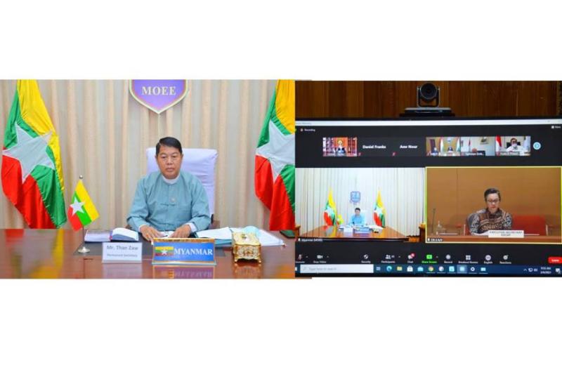 ကုလသမဂ္ဂ အာရှပစိဖိတ်ဆိုင်ရာ စီးပွားရေးနှင့် လူမှုရေးကော်မရှင်က ကြီးမှူး၍ ယနေ့တွင် ထိုင်းနိုင်ငံ ဘန်ကောက်မြို့၌ Online မှတစ်ဆင့် ကျင်းပသည့် Extractive Industries, Sustainable Development and the 2030 Agenda in Asia and the Pacific (စကားဝိုင်းဆွေးနွေးပွဲ) သို့ လျှပ်စစ်နှင့်စွမ်းအင်ဝန်ကြီးဌာန အမြဲတမ်းအတွင်းဝန် ဦးသန်းဇော် ဗီဒီယိုကွန်ဖရင့်စနစ်ဖြင့် ပါဝင်တက်ရောက်သည်။