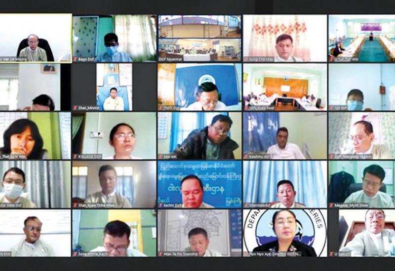 စိုက်ပျိုးရေး၊ မွေးမြူရေးနှင့် ဆည်မြောင်းဝန်ကြီးဌာန ငါးလုပ်ငန်းဦးစီးဌာန ငါးမွေးကန်များ ဧကစာရင်းမှန်ကန် စေရေးနှင့် ပယ်ဖျက်လိုသောငါးမွေးကန်များ စာရင်းများ နှင့်ပတ်သက်၍ ညှိနှိုင်းအစည်းအဝေးကို ယမန်နေ့က Zoom Meeting ဖြင့် ကျင်းပသည်။