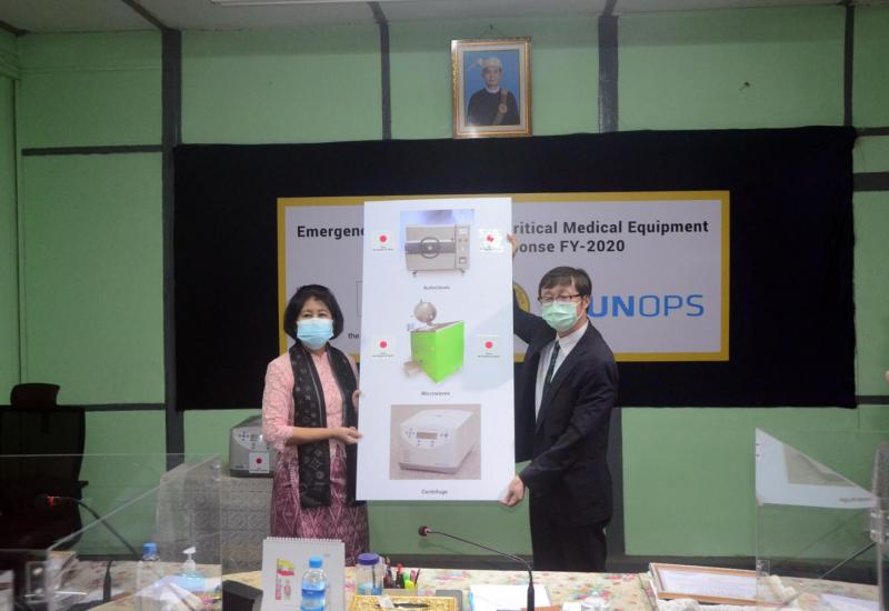 ဂျပန်နိုင်ငံအစိုးရနှင့်ပြည်သူများက မြန်မာနိုင်ငံ၏ ကိုဗစ်-၁၉ ရောဂါ ကာကွယ်၊ ထိန်းချုပ်၊ တိုက်ဖျက်ရေးလုပ်ငန်းများ ဆောင်ရွက်ရာတွင် အသုံးပြုရန်အတွက် ဆေးဘက် ဆိုင်ရာ ပစ္စည်း ကိရိယာများထောက်ပံ့လှူဒါန်းသည့် အခမ်းအနားကို ယနေ့နံနက် ၁၁ နာရီတွင် ရန်ကုန်မြို့၊ ဒဂုံမြို့နယ်၊ မော်ကွန်းတိုက်လမ်းရှိ အမျိုးသားကျန်းမာရေး ဓာတ်ခွဲ မှု ဆိုင်ရာဌာန ၌ကျင်းပသည်။