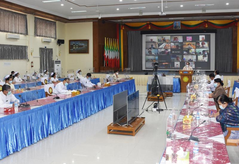 ရခိုင်ပြည်နယ် ငြိမ်းချမ်းရေးနှင့် လူမှုစီးပွားဘဝ ဖွံ့ဖြိုးတိုးတက်ရေးဆိုင်ရာ ကိစ္စရပ်များ ပူးပေါင်း ဆောင်ရွက်ရေး ညှိနှိုင်းအစည်းအဝေးကို ယမန်နေ့ နံနက်ပိုင်းတွင် ဗီဒီယိုကွန်ဖရင့်စနစ်ဖြင့် ကျင်းပသည်။