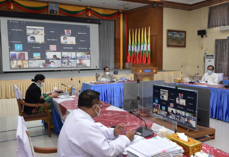 ကျန်းမာရေးနှင့်အားကစားဝန်ကြီးဌာန ပါမောက္ခများ၊ အထူးကုဆရာဝန်ကြီးများနှင့် သူနာပြု ဆရာမကြီးများ၏ ကိုဗစ်-၁၉ ကုသရေး ဆိုင်ရာ အတွေ့အကြုံနှင့် ဆန်းစစ်သုံးသပ်တွေ့ရှိချက်များ တင်ပြဆွေးနွေးပွဲကို ယနေ့နံနက်ပိုင်း တွင် ဗီဒီယိုကွန်ဖရင့် စနစ်ဖြင့် ကျင်းပသည်။