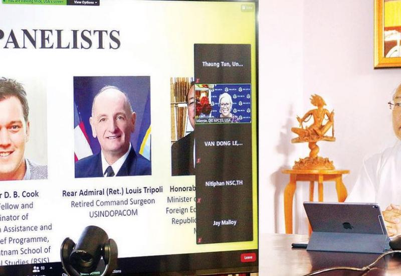 ရင်းနှီးမြှုပ်နှံမှုနှင့် နိုင်ငံခြားစီးပွားဆက်သွယ်ရေးဝန်ကြီးဌာန ပြည်ထောင်စု ဝန်ကြီး ဦးသောင်းထွန်းသည် အာရှ-ပစိဖိတ် လုံခြုံရေး ဆိုင်ရာ လေ့လာမှုစင်တာ (APCSS) က ယနေ့ ကျင်းပသည့် “ကိုဗစ်-၁၉ နှင့် အလွန်ကာလ - ကြံ့ကြံ့ခံနိုင်မှု မြင့်မားရေး နိုင်ငံတကာ ပူးပေါင်းဆောင်ရွက်မှု” အလုပ်ရုံဆွေးနွေးပွဲသို့ virtual conference ဖြင့် တက်ရောက်၍ အဓိကဦးဆောင်ဆွေးနွေးသူအဖြစ် ပါဝင် ဆွေးနွေးသည်။