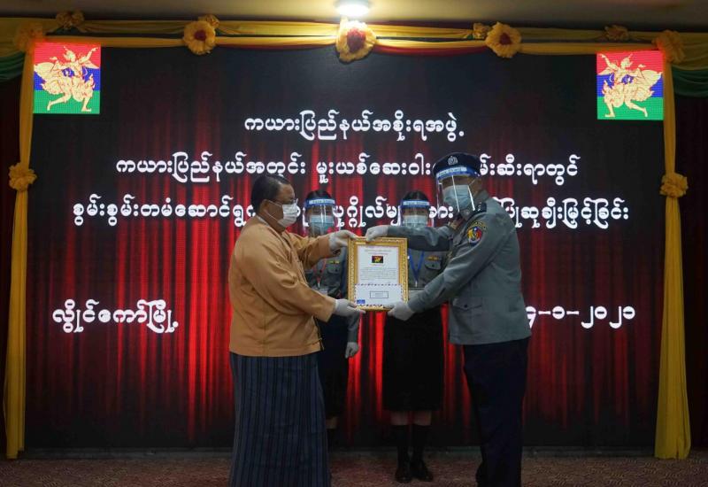 ကယားပြည်နယ်အတွင်း မူးယစ်ဆေးဝါးဖမ်းဆီးရာတွင် စွမ်းစွမ်းတမံဆောင်ရွက်ခဲ့သည့် ပုဂ္ဂိုလ်များအား ဂုဏ်ပြုဆုချီးမြှင့်ခြင်းကို ယမန်နေ့မွန်းလွဲပိုင်းက ကယားပြည်နယ်အစိုးရအဖွဲ့ရုံး အစည်းအဝေးခန်းမ၌ ကျင်းပပြုလုပ်ခဲ့သည်။
