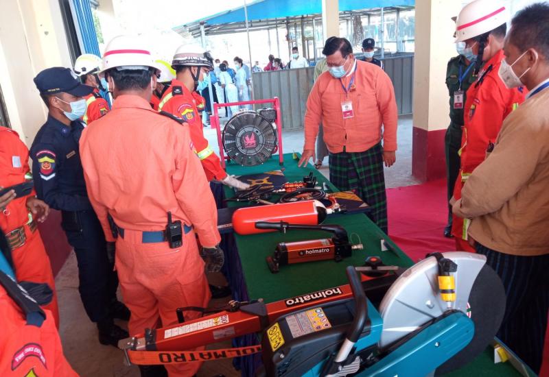 ဧရာဝတီတိုင်းဒေသကြီးအတွင်း ငလျင်ဘေးနှင့် မီးဘေးအစရှိသည့် သဘာဝဘေးအန္တရာယ်များ ဖြစ်ပွားလာပါက ရှာဖွေ ကယ်ဆယ်ရေး လုပ်ငန်းများကို ထိရောက်လျင်မြန်စွာ ဆောင်ရွက်နိုင်ရေးအတွက် တိုင်းဒေသကြီး မီးသတ်ဦးစီးဌာနမှ သဘာဝဘေး ငလျင်ဒဏ် ဇာတ်တိုက်လေ့ကျင့်ခန်း သရုပ်ပြပွဲကို ယနေ့ နံနက်ပိုင်းက တိုင်းဒေသကြီး မီးသတ်ဦးစီးမှူး ညွှန်ကြားရေးမှူး ဦးအောင်ဆွေ၀င်း ဦးဆောင်၍ တိုင်းဒေသကြီး မီးသတ်ဦးစီးဌာန ရုံးဝန်း၌ ကျင်းပသည်။