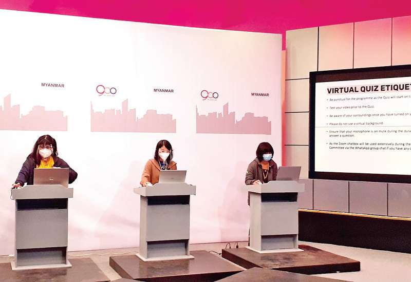 (၉) ကြိမ်မြောက် အာဆီယံဉာဏ်စမ်းပဟေဠိ ဒေသတွင်းအဆင့်ပြိုင်ပွဲ (9th ASEAN Quiz- Regional Level) ကို ယမန်နေ့ နံနက် ၇ နာရီခွဲတွင် စင်ကာပူနိုင်ငံက အလှည့်ကျအိမ်ရှင်အဖြစ် အွန်လိုင်းမှတစ်ဆင့် ပြုလုပ်ရာ မြန်မာနိုင်ငံကိုယ်စားပြု ကျောင်းသူသုံးဦး ရန်ကုန်မြို့ မြန်မာ့အသံနှင့် ရုပ်မြင်သံကြားရှိ စတူဒီယိုခန်းမမှ ပါဝင်ယှဉ်ပြိုင်ကြသည်။