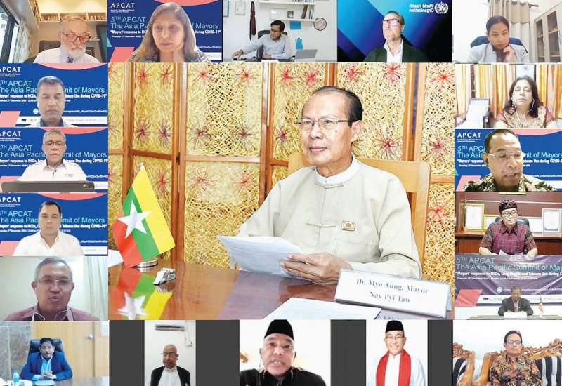 အာရှ-ပစိဖိတ် မြို့တော်များ ဆေးလိပ်သောက်သုံးမှု ထိန်းချုပ်ရေးနှင့် မကူးစက်တတ်သော ရောဂါများ ကာကွယ်ရေးဆိုင်ရာ မိတ်ဖက်အဖွဲ့ (APCAT) က ဗီဒီယိုကွန်ဖရင့်စနစ်ဖြင့် ကျင်းပသည့် (၅) ကြိမ်မြောက် အာရှ-ပစိဖိတ် မြို့တော်ဝန်များ အစည်းအဝေးကို ယနေ့ မွန်းလွဲ ၁ နာရီခွဲတွင် နီပေါနိုင်ငံ၌ ကျင်းပရာ နေပြည်တော်ကောင်စီဥက္ကဋ္ဌ မြို့တော်ဝန် ဒေါက်တာ မျိုးအောင် ပါဝင်တက်ရောက်သည်။