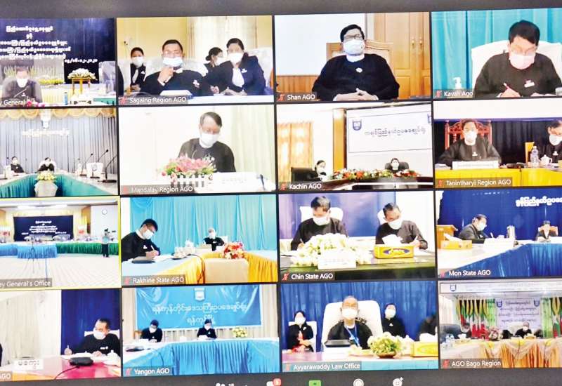 ပြည်ထောင်စုရှေ့နေချုပ်နှင့် တိုင်းဒေသကြီး/ ပြည်နယ် ဥပဒေချုပ်များ၊ တိုင်းဒေသကြီး/ ပြည်နယ် ဥပဒေအရာရှိ များ၏ အဋ္ဌမအကြိမ် လုပ်ငန်းညှိနှိုင်း ဆွေးနွေးပွဲကို ဒီဇင်ဘာ ၁၅ ရက်တွင် ပြည်ထောင်စုရှေ့နေချုပ်ရုံး အစည်း အဝေးခန်းမ၌ အွန်လိုင်းစနစ်ဖြင့် ကျင်းပသည်။