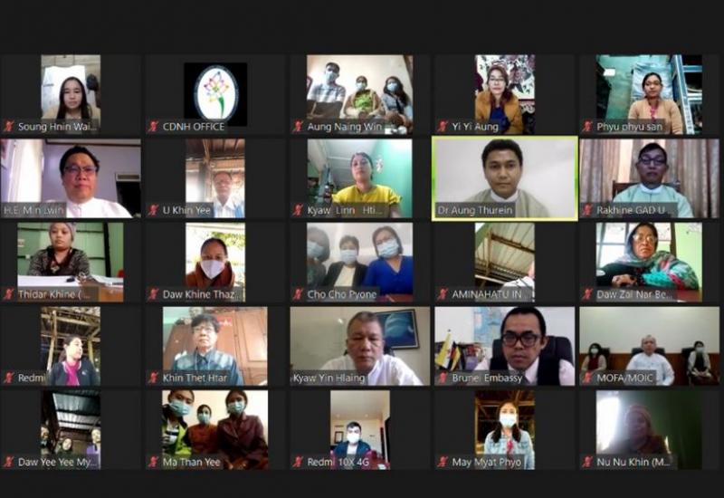 နိုင်ငံတော်အတိုင်ပင်ခံရုံးဝန်ကြီးဌာန၊ ကွဲပြားခြားနားမှုနှင့်အမျိုးသားရေး သဟဇာတဖြစ်မှုဆိုင်ရာ လေ့လာရေးအဖွဲ့ (CDNH) တို့ ပူးပေါင်းပြုလုပ်သည့် ရခိုင်ပြည်နယ်အတွင်း အမုန်းစကားဆန့်ကျင်ရေး နှင့် လူမှုသဟဇာတဖြစ်စေရေး ဦးတည်သော အမျိုးသမီးများ တွေ့ဆုံဆွေးနွေးပွဲ (တတိယအကြိမ်) ဖွင့်ပွဲအခမ်းအနားကို ဒီဇင်ဘာ ၁၂ ရက် နံနက် ၉ နာရီခွဲက Online ဖြင့် ကျင်းပခဲ့သည်။