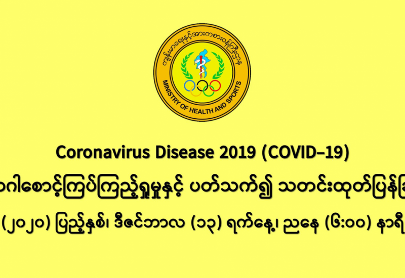 (၁၂-၁၂-၂၀၂၀) ရက်နေ့၊ ည (၈:၀၀) နာရီမှ (၁၃-၁၂-၂၀၂၀) ရက်နေ့၊ ည (၈:၀၀) နာရီ အတွင်း ဓာတ်ခွဲနမူနာ စုစုပေါင်း (၁၈,၅၆၄) ခုအား စစ်ဆေးပြီးစီးခဲ့ရာ COVID-19 ရောဂါ ဓာတ်ခွဲအတည်ပြု လူနာသစ် (၁,၁၂၇) ဦး တွေ့ရှိရပါသည်။
