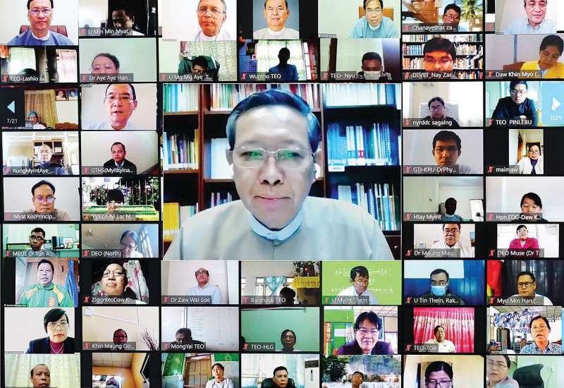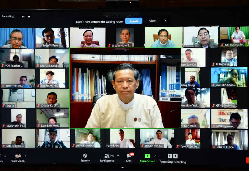 အမျိုးသားပညာရေးမဟာဗျူဟာစီမံကိန်း (၂၀၂၁-၂၀၃၀) (National Education Strategic Plan - NESP) (2021-2030) ရေးဆွဲရေးအတွက် ပါမောက္ခချုပ်များကော်မတီ၊ ပါမောက္ခချုပ်များ၊ ကျောင်းအုပ်ကြီးများ၊ ပညာရေးမှူးများ၊ တာဝန်ရှိသူများနှင့် လုပ်ငန်းညှိနှိုင်းအစည်းအဝေးကို ယနေ့ နံနက် ၉ နာရီခွဲတွင် နေပြည်တော် ပညာရေးဝန်ကြီးဌာန ရုံးအမှတ် (၁၃) မှ ဗီဒီယိုကွန်ဖရင့်စနစ်ဖြင့် ကျင်းပသည်။