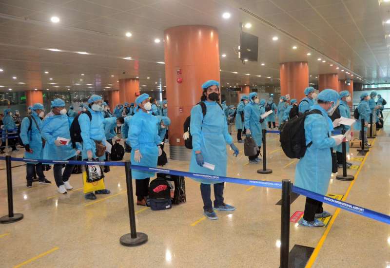 နိုင်ငံတကာခရီးသည်တင်လေယာဉ်များ ပျံသန်းမှု ယာယီရပ်ဆိုင်းထားခြင်းကြောင့် ဗီယက်နမ်နိုင်ငံ၌ အခက်အခဲကြုံတွေ့နေရသည့် မြန်မာနိုင်ငံသား ၁၂၆ ဦး အား ဟနွိုင်းမြို့ရှိ မြန်မာသံရုံးမှစီစဉ်သည့် မြန်မာ အပြည်ပြည်ဆိုင်ရာလေကြောင်းလိုင်း (MAI) ကယ်ဆယ် ရေးလေယာဉ်ဖြင့် ပြန်လည်ခေါ်ဆောင်ခဲ့ရာ ယနေ့ ညနေ ၆ နာရီ မိနစ် ၂၀ တွင် ရန်ကုန်အပြည်ပြည်ဆိုင်ရာလေဆိပ် သို့ အဆင်ပြေချောမွေ့စွာ ပြန်လည်ရောက်ရှိကြသည်။