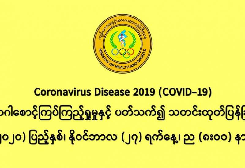 နိုဝင်ဘာလ ၂၈ ရက်နေ့တွင် ကျန်းမာရေးနှင့် အားကစား ဝန်ကြီးဌာန၏ ထုတ်ပြန်ကြေညာချက်အရ ၂၄ နာရီအတွင်း ဓာတ်ခွဲစစ်ဆေးသူ ၁၇၉၂၄ ဦးအနက် ရောဂါပိုးရှိကြောင်း တွေ့ရှိ သည့် ဓာတ်ခွဲအတည်ပြုလူနာ ၁၃၄၄ ဦးရှိ၏။ ၂၄ နာရီ အတွင်း ကိုဗစ်ရောဂါကြောင့် တိမ်းပါးဆုံးရှုံးရသူ ၂၂ ဦးရှိ၏။ ကိုဗစ်စတင်ဝင်ရောက်ချိန်ကစ ဓာတ်ခွဲအတည်ပြုလူနာ စုစုပေါင်း မှာ ရှစ်သောင်းရှစ်ထောင်နီးပါး ရှိသည်။ ရောဂါပျောက်ကင်းကာ ဆေးရုံမှ ဆင်းခွင့်ရသူ ခြောက်သောင်းခုနစ်ထောင်ကျော် ရှိနေ သည်။ စစ်ဆေးသူဦးရေနှင့် ရောဂါပိုးတွေ့ရှိသည်ဟု ဓာတ်ခွဲ အတည်ပြုထားသူဦးရေအချိုးမှာ ရာခိုင်နှုန်းအားဖြင့် ၇ ဒသမ ၅ ရာခိုင်နှုန်းနီးပါးဖြစ်၏။ ထိုအချိုး ရာခိုင်နှုန်း ၅ရာခိုင်နှုန်းအောက် သို့ရောက်အောင် အားလုံးသော ကျန်းမာရေးဝန်ထမ်းများက ကြိုးပမ်းနေကြခြင်းဖြစ်သည်။ မြန်မာနိုင်ငံ၏ အထွေထွေအနေ အထားကို ဆန်းစစ်ပြီး ရောဂါပြန့်ပွားမှုကို လျှော့ချနိုင်ရန်နှင့် လုံးဝကင်းရှင်းရန်ကို အစွမ်းကုန်ကြိုးပမ်းနေကြခြင်းဖြစ်၏။