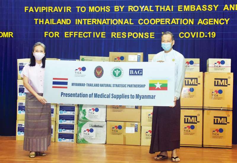 ကျန်းမာရေးနှင့် အားကစားဝန်ကြီး ဌာနသို့ မြန်မာနိုင်ငံဆိုင်ရာ ထိုင်းနိုင်ငံ သံရုံးနှင့် Thailand International Cooperation Agency တို့က PPE ဝတ်စုံများ၊ ဆေးဘက်ဆိုင်ရာ ပစ္စည်း များနှင့် FAVIPIRAVIR ဆေးများ ပေးအပ်လှူဒါန်းပွဲ အခမ်းအနားကို ယနေ့ မွန်းလွဲ ၃ နာရီက ရန်ကုန်မြို့ ဒဂုံမြို့နယ် ဇီဝကလမ်း အမှတ် (၅)ရှိ ဆေးသုတေသနဦးစီးဌာန (ရုံးချုပ်) အစည်းအဝေးခန်းမ၌ ပြုလုပ်သည်။