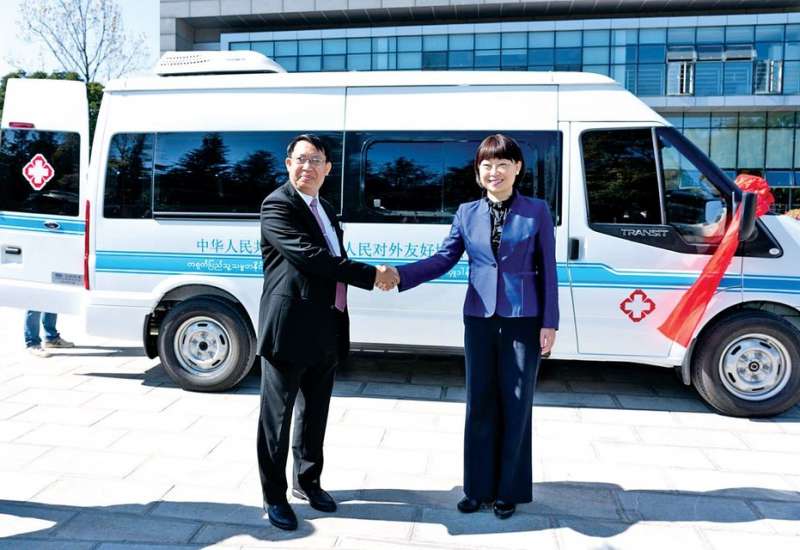 မြန်မာနိုင်ငံ၏ ကိုဗစ်-၁၉ ရောဂါ ကာကွယ်၊ ထိန်းချုပ်၊ ကုသရေးလုပ်ငန်းများတွင် အသုံးပြုရန်အတွက် တရုတ် နိုင်ငံ ယူနန်ပြည်နယ် ပြည်သူ့ပြည်ပချစ်ကြည်ရေးအသင်း က ရန်ကုန်တိုင်းဒေသကြီးသို့ Medical Vehicle တစ်စီး နှင့် Ventilator တစ်လုံး ပေးအပ်လှူဒါန်းသည့် အခမ်းအနား ကို ကူမင်းမြို့ ကောင်စစ်ပရဝဏ်ရှိ ကောင်စစ်ဝန်ချုပ်ရုံး များ ဝန်ဆောင်မှုဌာန၌ ယနေ့ ကျင်းပရာ ယူနန်ပြည်နယ် ပြည်သူ့ပြည်ပချစ်ကြည်ရေးအသင်းကိုယ်စား ယူနန် ပြည်နယ် ပြည်သူ့အစိုးရ နိုင်ငံခြားရေးရုံး ညွှန်ကြားရေး မှူးချုပ်နှင့် ပြည်သူ့ပြည်ပချစ်ကြည်ရေးအသင်း၏ ဥက္ကဋ္ဌဖြစ်သူ Mme. Pu Hong က လွှဲပြောင်းပေးအပ်ပြီး ကူမင်းမြို့ မြန်မာကောင်စစ်ဝန်ချုပ်ရုံး ကောင်စစ်ဝန်ချုပ် ဦးထွန်းအောင်ကျော်က လက်ခံရယူ သည်။