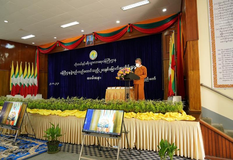 ဟိုတယ်နှင့်ခရီးသွားလာရေးဝန်ကြီးဌာန ဖွဲ့စည်းတည်ထောင်သည့် (၂၈) နှစ်ပြည့် အထိမ်းအမှတ် Virtual အခမ်းအနားကို ယနေ့နံနက်ပိုင်းတွင် နေပြည်တော်ရှိ အဆိုပါဝန်ကြီးဌာန ကျောက်စိမ်း ခန်းမ၌ ဗီဒီယိုကွန်ဖရင့်စနစ်ဖြင့် ကျင်းပသည်။