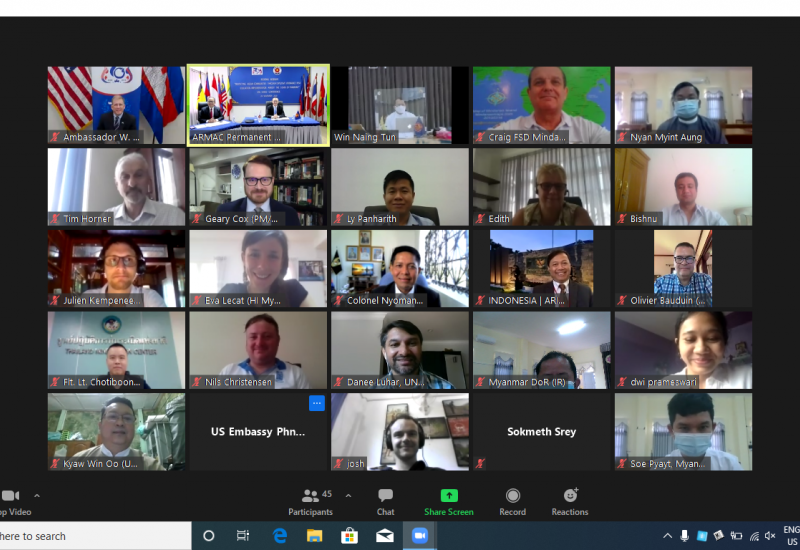 ကမ္ဘောဒီးယားနိုင်ငံရှိ အာဆီယံဒေသတွင်း မိုင်းရှင်းလင်းရေး ဗဟိုဌာန (ARMAC) တွင် ကိုဗစ်-၁၉ ကာလ အတွင်း ပေါက်ကွဲစေတတ်သော ပစ္စည်းများအန္တရာယ် အသိပညာပေးမှု (Explosive Ordnance Risk Education) အကောင်အထည်ဖော်ခြင်းဖြင့် အာဆီယံ လူ့အသိုက်အဝန်းကို အကာအကွယ်ပြုခြင်းဆိုင်ရာ Regional Webinar အစည်းအဝေးကို ယနေ့နံနက်ပိုင်းတွင် ကျင်းပသည်။