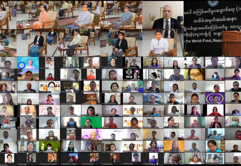အမျိုးသမီးများအပေါ် အကြမ်းဖက်မှု ပပျောက်ရေး (၁၆) ရက်တာလှုပ်ရှားမှု အထိမ်း အမှတ်အခမ်း အနားကို ယနေ့နံနက်ပိုင်းတွင် လူမှု၀န်ထမ်း၊ ကယ်ဆယ်ရေးနှင့် ပြန်လည်နေရာ ချထားရေး၀န်ကြီးဌာန၌ ဗီဒီယိုကွန်ဖရင့်စနစ်ဖြင့် ကျင်းပသည်။