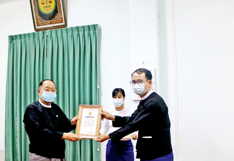 နိုင်ငံတော် ဖွဲ့စည်းပုံအခြေခံဥပဒေဆိုင်ရာခုံရုံးသို့ တင်သွင်းလာသည့် တင်သွင်းလွှာ အမှတ် ၁/၂၀၂၀ ကို e-Court စနစ်ဖြင့် ကြားနာဆုံးဖြတ်ရာတွင် ပါဝင်ဆောင်ရွက်ခဲ့သော e-Government ဌာနနှင့် တရားရေး ဌာနတို့မှ ဝန်ထမ်းများအား ဂုဏ်ပြုမှတ်တမ်းလွှာ ပေးအပ်ချီးမြှင့်ပွဲ အခမ်းအနားကို ယနေ့နံနက် ၁၀ နာရီခွဲက နိုင်ငံတော် ဖွဲ့စည်းပုံအခြေခံ ဥပဒေဆိုင်ရာခုံရုံး အစည်းအဝေးခန်းမ၌ ကျင်းပသည်။
