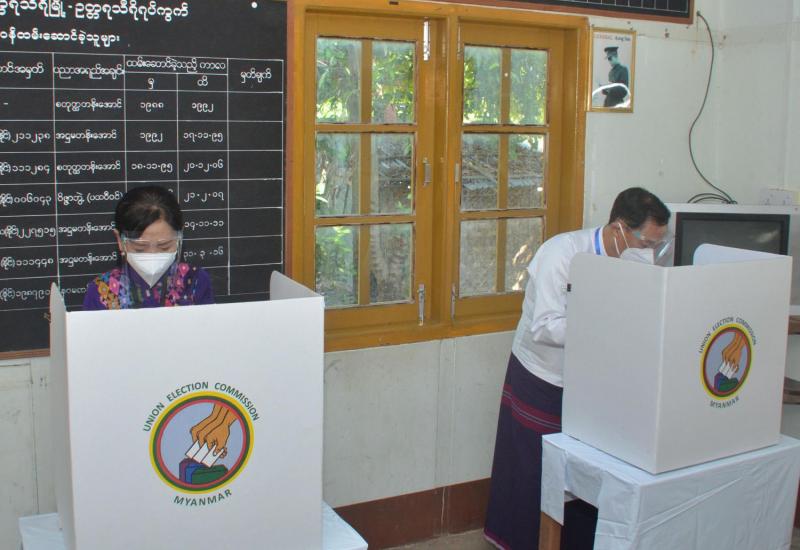 ပြည်ထောင်စုတရားသူကြီးချုပ် ဦးထွန်းထွန်းဦးနှင့်ဇနီး ဒေါ်အေးအေးသိန်း၊ နိုင်ငံ တော်ဖွဲ့စည်းပုံ အခြေခံဥပဒေဆိုင်ရာ ခုံရုံးဥက္ကဋ္ဌ ဦးမျိုးညွန့်နှင့်ဇနီး ဒေါ်ဌေးရီ၊ ပြည်ထောင်စုရွေးကောက်ပွဲ ကော်မရှင် ဥက္ကဋ္ဌ ဦးလှသိန်းနှင့် ဇနီးဒေါ်အေးသီတာတို့သည် ယနေ့နံနက်ပိုင်းတွင် နိုဝင်ဘာ ၈ ရက်၌ ကျင်းပမည့် ၂၀၂၀ပြည့်နှစ် အထွေထွေ ရွေးကောက်ပွဲတွင် နေပြည်တော် ဥတ္တရသီရိ မဲဆန္ဒနယ်မှ ဝင်ရောက်ယှဉ်ပြိုင်ကြမည့် လွှတ်တော်ကိုယ်စားလှယ် နေရာများအတွက် ကြိုတင် ဆန္ဒမဲပေးကြသည်။