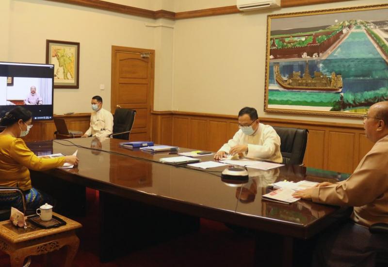 ရင်းနှီးမြှုပ်နှံမှုနှင့် နိုင်ငံခြားစီးပွားဆက်သွယ်ရေးဝန်ကြီးဌာန ပြည်ထောင်စုဝန်ကြီး ဦးသောင်းထွန်း နှင့် စင်ကာပူနိုင်ငံ ကုန်သွယ်ရေးနှင့် စက်မှုဝန်ကြီး Mr. Chan Chun Sing တို့သည် ယနေ့နံနက် ၁၀ နာရီတွင် ဗီဒီယိုကွန်ဖရင့် စနစ်ဖြင့် တွေ့ဆုံဆွေးနွေးသည်။