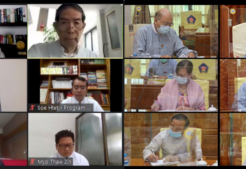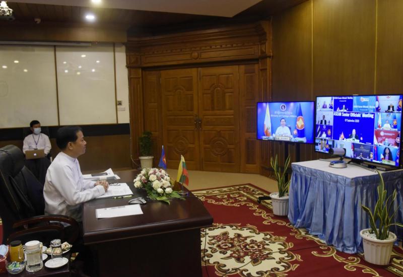 အာဆီယံ အဆင့်မြင့် အရာရှိကြီးများအစည်းအဝေးနှင့် အရှေ့တောင်အာရှ နျူကလီးယား လက်နက်ကင်းမဲ့ဇုန်ဆိုင်ရာ အလုပ်အမှုဆောင်ကော်မတီ အစည်းအဝေးတို့ကို ယနေ့ နံနက် ၈ နာရီတွင် Videoconferencing စနစ်ဖြင့် ကျင်းပရာ နိုင်ငံခြားရေးဝန်ကြီးဌာန၊ အမြဲတမ်း အတွင်းဝန် ဦးစိုးဟန်သည် နေပြည်တော်မှ ပါဝင်တက်ရောက်ဆွေးနွေးသည်။